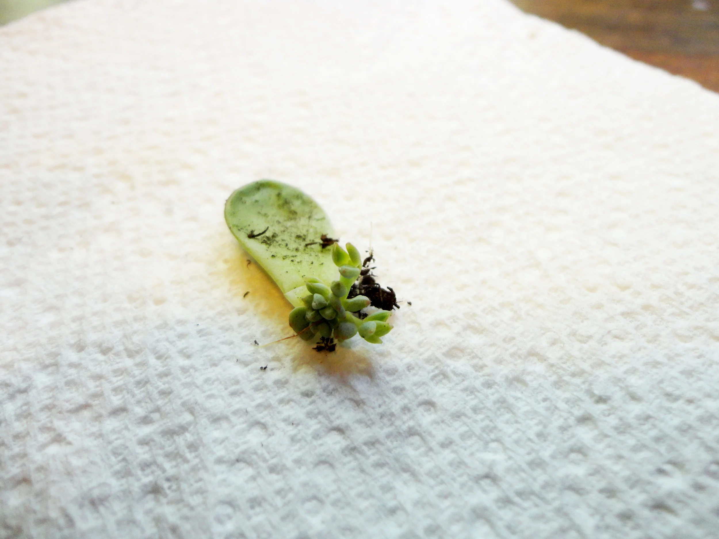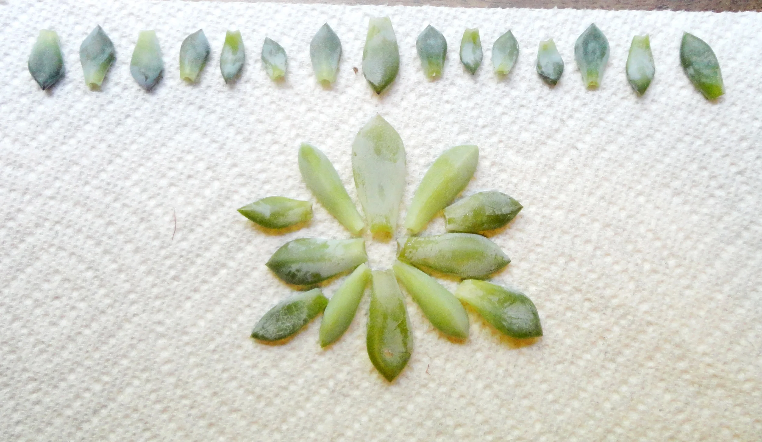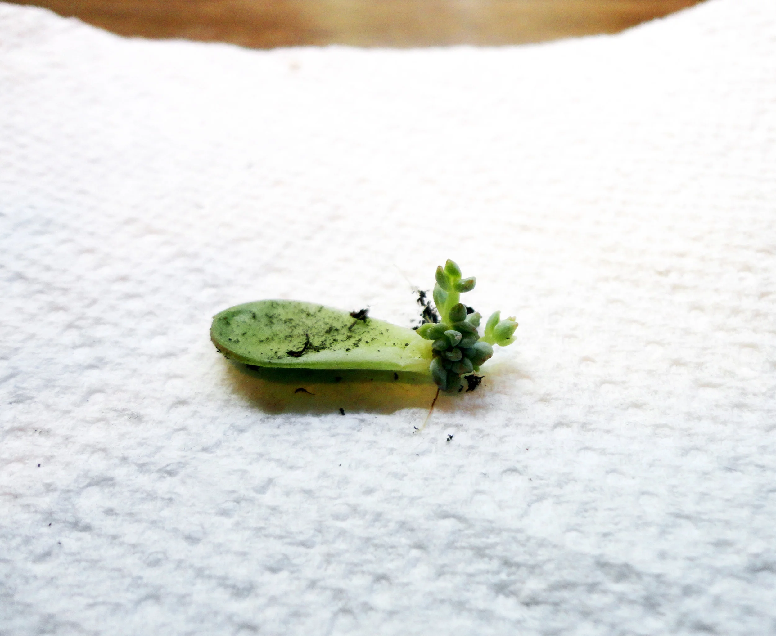Collect all your dropped leaves and place on a paper towel. Wait for the end of the leaf or stem to dry and callus. Once it has dried place it on top of succulent soil and spritz with a spray bottle a couple times a week.