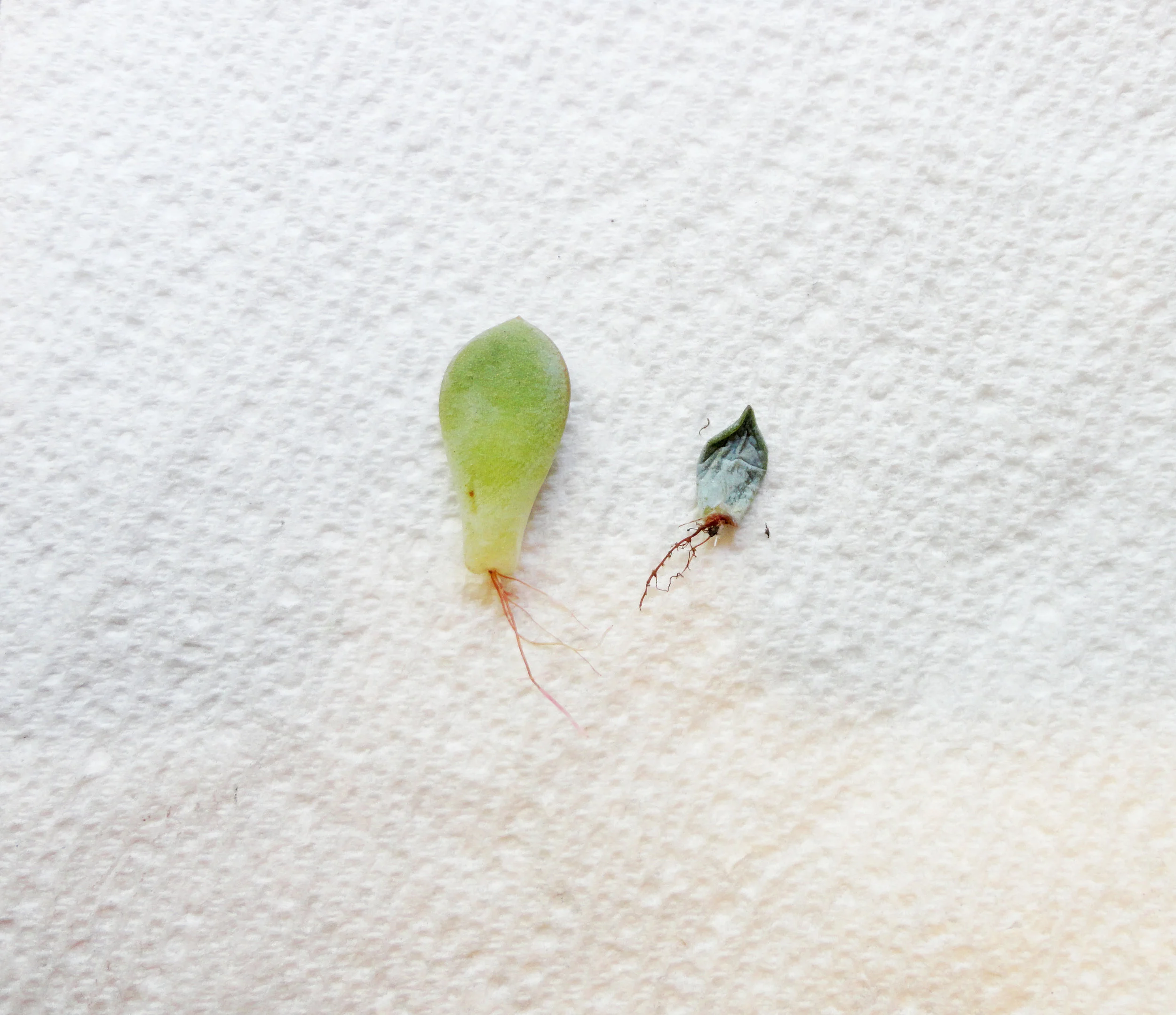 I LOVE succulents. They are pretty low maintenance, and come in all sorts of different colors and shapes. Unfortunately my first go around with them turned out very poorly and I ended up killing all of them. I watered them too much and put a few in direct sunlight and fried them. Since then I research the different species I buy to make sure I am taking care of them correctly. If you have ever had any succulents then you know that they tend to drop leaves. You can use these dropped leaves to grow more plants. Lots of websites will tell you that you need to use special rooting hormone. This may speed up the rooting process, but in no way is it necessary.